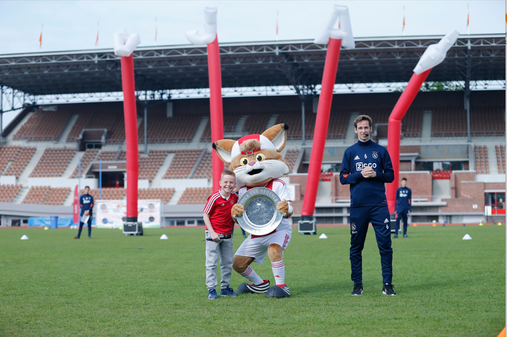 Ajaxsupporters delen hun clubliefde. Samen winnen, samen verliezen en samen juichen daarom organiseert de supportersvereniging van Ajax een open dag voor de Jongste Ajaxcieden.